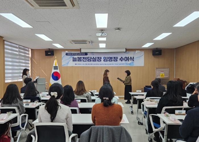 [메이저뉴스]파주교육지원청은 2026. 2. 12. 파주교육지원청 별관 201호에서 '2026학년도 늘봄전담실장 임명장 수여식'을 개최하고, 새롭게 선발된 18명의 늘봄전담실장에게 임명장을 수여했다.