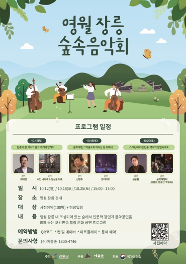 [메이저뉴스]영월군은 오는 10월 12일, 18일, 25일 오후 3시부터 5시까지 세계유산 장릉 경내에서 ‘영월 장릉 숲속 음악회’를 개최한다.