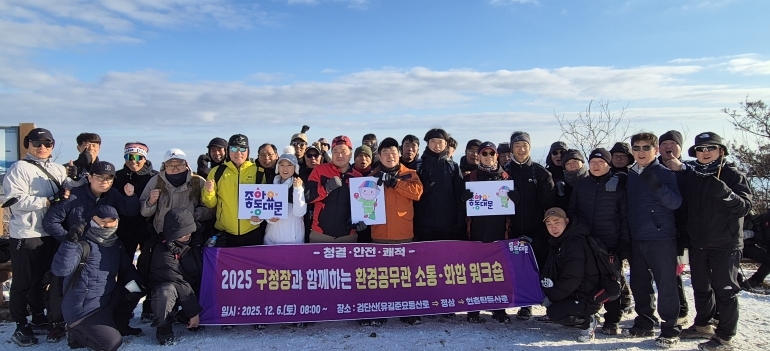 이 구청장은 산행을 마친 뒤 “연말을 맞아 1년 내내 구석구석 동네를 지켜주신 환경공무관 여러분과 땀을 나누고 싶었다”며 “서로의 고생을 이해하고, 내년 구정 방향도 자연스럽게 공유하는 뜻깊은 시간이었다”고 말했다.