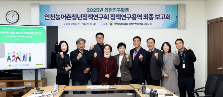 [메이저뉴스]인천광역시의회 의원연구단체 ‘인천 농어촌 청년정책 연구회(대표의원 신영희)’가 19일 행정안전위원회 세미나실에서 정책연구용역 최종보고회를 열고, 농어촌·도서 지역의 인구 감소 대응을 위한 평생교육·사회적경제 기반 청년 정착 모델을 발표했다.