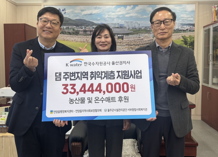 [메이저뉴스]울주군시설관리공단 서부종합사회복지관(이사장 최인식)은 12월 8일, 한국수자원공사 울산권지사와 함께 ‘물길따라 온기 전하는 겨울나기 지원사업’을 추진해 댐 주변지역 취약계층 233세대에 온수매트와 농산물 꾸러미를 지원했다.