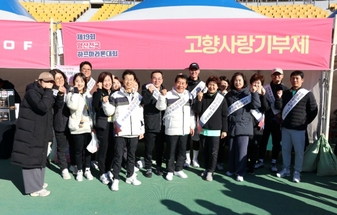 [메이저뉴스]양산시는 지난 6일 개최된 제19회 양산전국하프마라톤대회에서 ‘고향사랑기부제 홍보 부스’를 운영해 참가자 및 방문 시민들에게 고향사랑기부제를 적극 홍보했다.