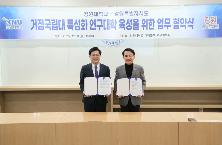 정재연 총장은 “이번 협약은 강원대학교가 지역 전략산업의 혁신 성장을 이끄는 연구중심 대학으로 발돋움하는 중요한 전환점이 될 것”이라며 “앞으로 강원특별자치도와의 긴밀한 협력을 통해 연구 역량을 획기적으로 강화하고, 지역 미래 산업을 이끌어갈 우수 인재를 양성하는 데 대학의 모든 역량을 집중하겠다”고 전했다.