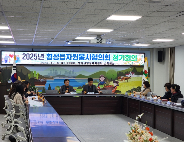 [메이저뉴스]횡성읍자원봉사협의회(회장 이석원)는 8일 횡성읍 행정복지센터 소회의실에서 회원 20여 명이 참석한 가운데 2025년 4분기 정기회의를 개최했다.