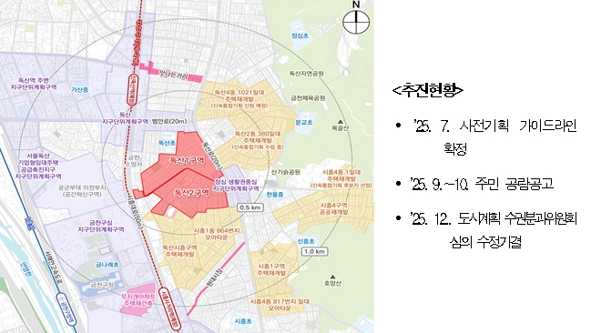 [메이저뉴스]서울시는 2025년 12월 24일 '제14차 도시계획위원회 신속통합기획 정비사업 등 수권분과위원회'를 개최하여 ‘독산동 1036일대(독산1구역)’과 ‘독산동 1072 일대(독산2구역)’ 주택정비형 재개발사업 정비구역 지정 및 정비계획 결정(안)을 '수정가결' 했다고 밝혔다.