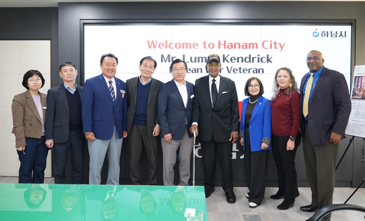 [메이저뉴스]하남시는 11월 7일, 美 아칸소주 출신의 6·25 참전용사 루마스 켄드릭(Lumas Kendrick) 씨가 국가보훈부 초청으로 한국을 방문함에 따라 하남시청을 찾았다고 밝혔다. 이번 방문에는 켄드릭 씨의 자녀 루마스 켄드릭 주니어(Lumas Kendrick Jr.), 전 아칸소 한인회장 정 나오미 씨와 하남시 재향군인회 임문택 회장이 함께했다.