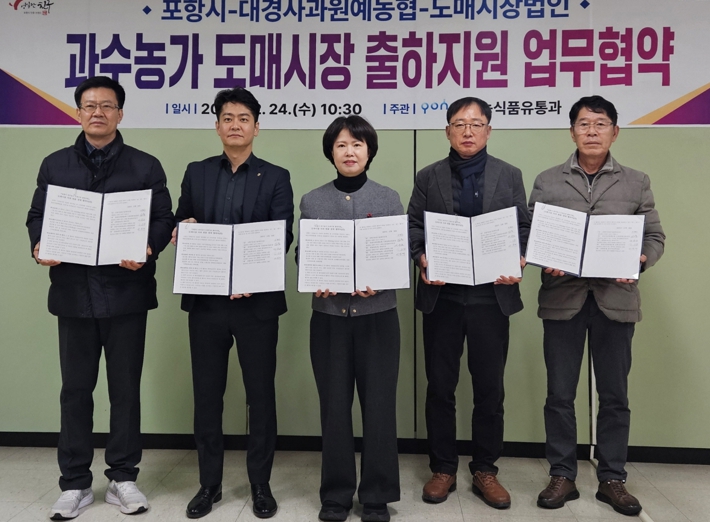 [메이저뉴스]포항시는 24일 포항시 농산물 도매시장에서 2026년 신규사업인 ‘과수농가 도매시장 출하지원사업’의 원활한 추진을 위한 업무협약(MOU)을 체결했다.