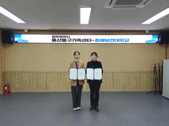 | ▲ 울산중구가족센터-춘해보건대 글로벌케어과, ‘산학 공동발전 지역 멘토기관’ 업무협약 체결 |
