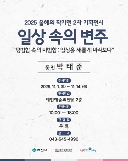 앞서 (재)제천문화재단은 지난 3월 장범순, 박태준 작가를 최종 선정했고, 이번 전시는 박태준 작가의 2차 전시이다.