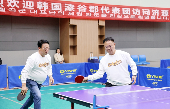 지난달 30일 제원시청 체육관에서 열린 경기에는 김재욱 칠곡군수와 이상승 칠곡군의회 의장, 친바오젠 제원시 시장, 자오후이성 부시장이 함께 라켓을 잡았다.