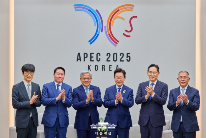 [메이저뉴스]이재명 대통령은 10월 31일 오후 2시 경주 APEC 정상회의를 계기로 방한한 젠슨 황 엔비디아 대표를 만나, 대한민국 AI 인프라를 비롯한 생태계 전반의 혁신 방안에 대해 의견을 교환했다. 이 자리에는 삼성전자 이재용 회장, SK 최태원 회장, 현대차그룹 정의선 회장, 네이버 이해진 의장이 함께했다.