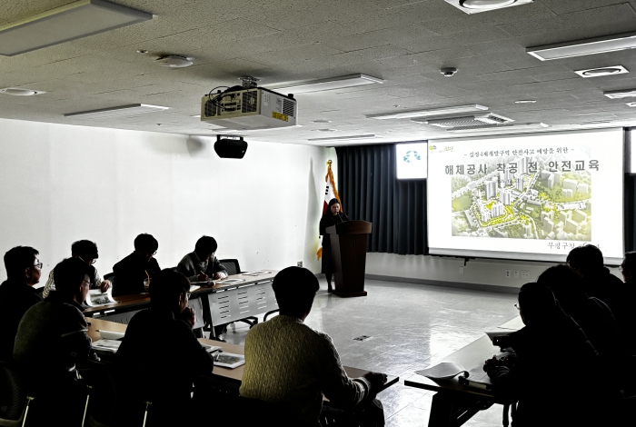 [메이저뉴스]부평구는 23일 구청에서 십정4구역 재개발사업 공사관계자 등 11여 명을 대상으로 ‘십정4구역 해체공사 착공 전 안전교육’을 진행했다.