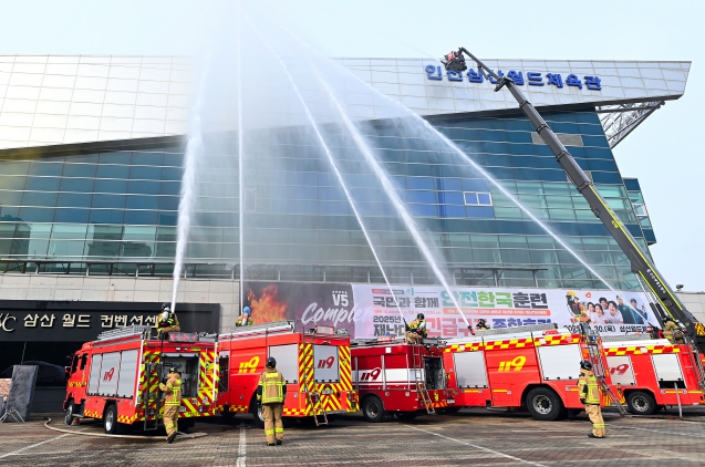 [메이저뉴스]부평구는 30일 삼산월드체육관에서 재난 대응 역량 강화를 위한 지진·화재 등 복합 재난 대비 ‘2025년 안전한국훈련’을 실시했다.