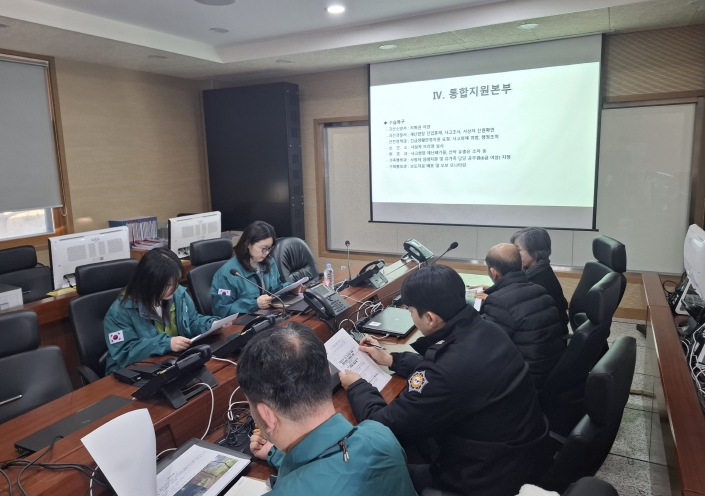 훈련은 △재난상황 전파에 따른 상황판단회의 △통합지원본부 설치 결정에 따른 실무반별 토론훈련 △구조작업 완료 후 현장지휘권 이양 및 수습·복구 토의 순으로 진행됐다.