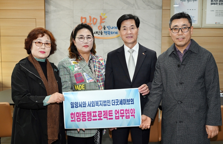 [메이저뉴스]경남 밀양시는 5일 시장실에서 사회복지법인 더 굿 세이브(회장 박영태)와 드림스타트 아동 30여 명을 대상으로 1년간 도시락 및 맞춤형 서비스 지원을 위한 ‘희망동행 프로젝트’ 업무협약을 체결했다고 밝혔다.