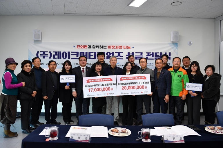 [메이저뉴스]세종특별자치시 전의면지역사회보장협의체가 22일 전의면 행복누림터(복합커뮤니티센터)에서 ㈜레이크머티리얼즈로부터 성금 3,700만 원을 전달받았다.