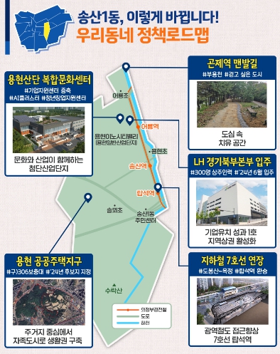 [메이저뉴스]의정부시는 시민 생활과 밀접한 행정·인프라·복지·문화 등에 대한 정보를 지역 단위로 정리한 ‘우리동네 정책로드맵’ 송산1동편을 9일 발표했다.