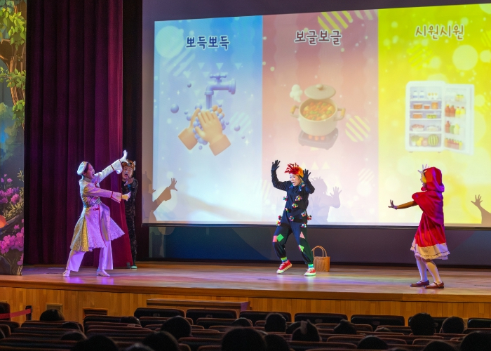 이번 공연은 교육부의 ‘유치원 급식 내실화 지원 사업’의 일환으로, 유아 누리과정과 연계한 위생교육 콘텐츠를 개발해 마련된 것이다.