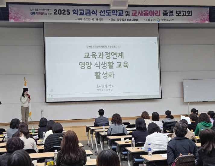 [메이저뉴스] 경북교육청은 19일 경주시에 있는 교원드림센터 대강의실에서 도내 영양(교)사 230여 명이 참석한 가운데 ‘2025학교급식 선도학교 및 교사동아리 성과보고회’를 개최했다고 밝혔다.