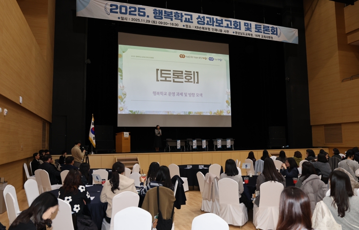 [메이저뉴스]경상남도교육청은 29일 KB손해보험 인재니움 사천에서 도내 행복(나눔·맞이)학교 담당자 및 교육지원청 관계자 300명이 참석한 가운데 ‘2025 행복학교* 성과보고회 및 토론회’를 개최했다.