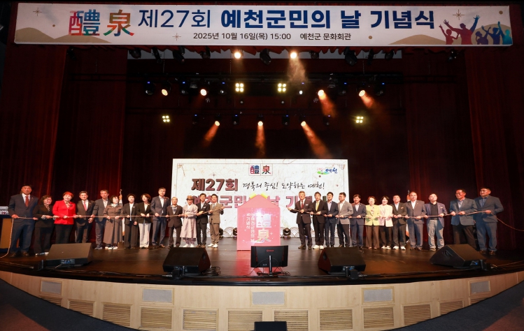 [메이저뉴스]예천군은 16일 오후 3시, 예천군문화회관에서 ‘제27회 예천군민의 날 기념식’ 을 성황리에 개최했다. 이번 행사는 기관·단체장과 군민 등 500여 명이 참석한 가운데, 군민의 자긍심을 높이고 군민 화합을 도모하는 뜻깊은 자리로 마련됐다.