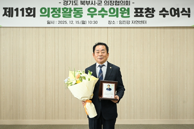 [메이저뉴스]의정부시의회 김연균 의장이 15일 연천군 임진강 자연센터에서 열린 ‘제11회 의정활동 우수의원 시상식’에서‘주민참여소통 부문’표창을 수상했다.