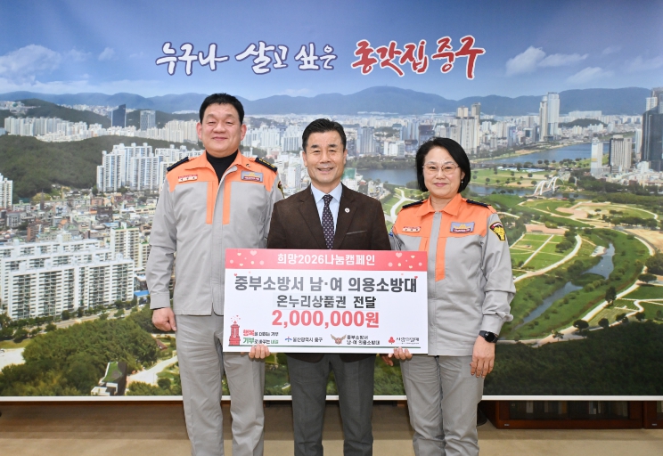 김영길 중구청장은 “항상 지역사회 안전 증진을 위해 힘써주셔서 감사드린다”며 “따뜻한 마음을 담아 도움이 필요한 이웃들에게 후원금을 소중히 전달하겠다”고 밝혔다.