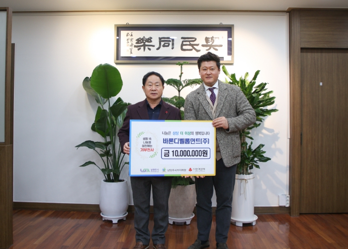 [메이저뉴스]남양주시는 5일 바른디벨롭먼트 주식회사가 지역 내 취약계층 지원을 위해 후원금 1천만 원을 남양주시복지재단에 기탁했다고 밝혔다.