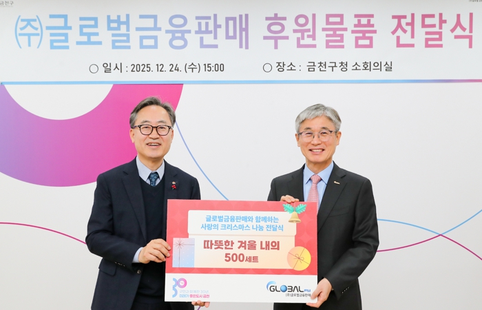지난 24일 금천구청 소회의실에서 ㈜글로벌금융판매의 후원물품 전달식이 진행됐다. 고물가 등으로 겨울내의 구입이 부담스러운 취약계층을 돕기 위해 1,500만 원 상당 겨울 내의를 후원했다. 겨울내의는 지역 내 취약계층 약 500세대에 전달될 예정이다.