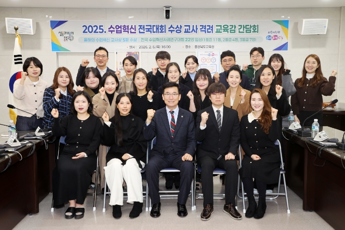 [메이저뉴스]충청북도교육청은 5일, 2025학년도 수업혁신 분야 전국대회 수상 교사를 초청해 교육감실에서 간담회를 열고, 교실수업 혁신성과를 거둔 교사들을 격려했다.