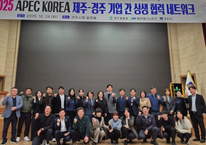 [메이저뉴스] 제주테크노파크(원장 지영흔, 제주TP)는 지난 28일 경상북도 경주시에서 열린‘2025 APEC(아시아태평양경제협력체)’ 연계 행사에서 경주시 및 사단법인 중소기업융합대구경북연합회 경주융합회(회장 김상헌)와 함께 제주·경주 기업 간 상생 협력 네트워크 회의를 개최했다고 3일 밝혔다.