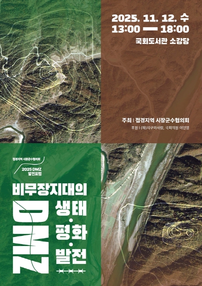 [메이저뉴스]접경지역시장·군수협의회는 오는 11월 12일 국회도서관(소강당)에서 “비무장지대의 생태·평화·발전”을 주제로 '2025 DMZ 발전포럼'을 개최한다. 이번 포럼은 올해 처음으로 열리는 행사로, 휴전 이후 70여 년간 소외되어온 접경지역의 조화로운 발전을 위해 필수적인 비무장지대(DMZ)에 대한 새로운 해석과 해외사례 분석을 통한 생태평화공원 조성 등 다양한 발전 방안을 제시할 예정이다.