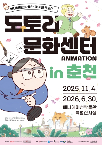 [메이저뉴스]애니메이션박물관은 오늘 11월 11일 '도토리 문화센터 in 춘천' 특별전 오픈식을 2층 특별전시실에서 개최했다. 이번 오픈식에는 애니메이션 제작사 5브릭스 대표, EBS PD, 강원애니고등학교 교장 등 주요 인사들이 참석했다. 또한 한국 애니메이션의 미래를 이끌어갈 강원애니고 학생들도 함께해 전시의 의미를 더했다.
