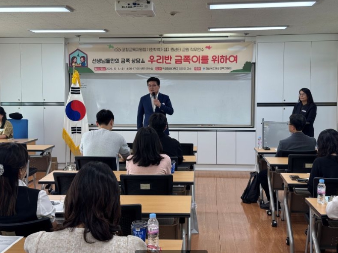 [메이저뉴스]포항교육지원청기초학력거점지원센터는 10월 1일 14:00 포항기초학력거점지원센터 4층 연수실에서 정서적 문제로 인해 학습 부진이 누적되고 있는 학생 지도에 어려움을 겪고 있는 포항지역 초등교사 40명을 대상으로 2025 포항교육지원청기초학력거점지원센터 교원 직무연수를 실시했다.