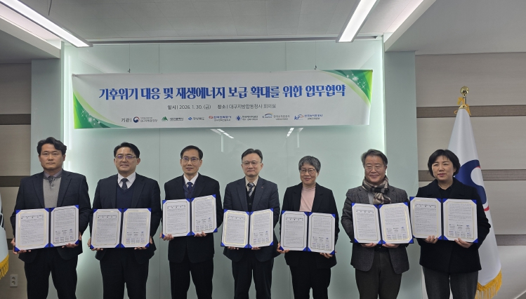 [메이저뉴스]경상북도는 대구지방환경청이 주관하고 대구광역시, 한국에너지공단 대경본부, 한국전력공사 대경건설지사 등 지역 유관기관이 참여하는‘재생에너지 보급 확대를 위한 업무협약’을 2026년 1월 30일 14시, 대구지방환경청 회의실에서 체결했다고 밝혔다.